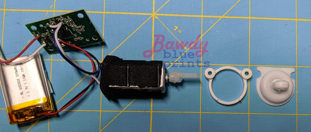 The cam shaft attached to the motor has a diameter of 5mm, with a 2.1mm shaft at its edge that interfaces with the diaphram bearing. This gives a 2.9mm displacement to the diaphram.